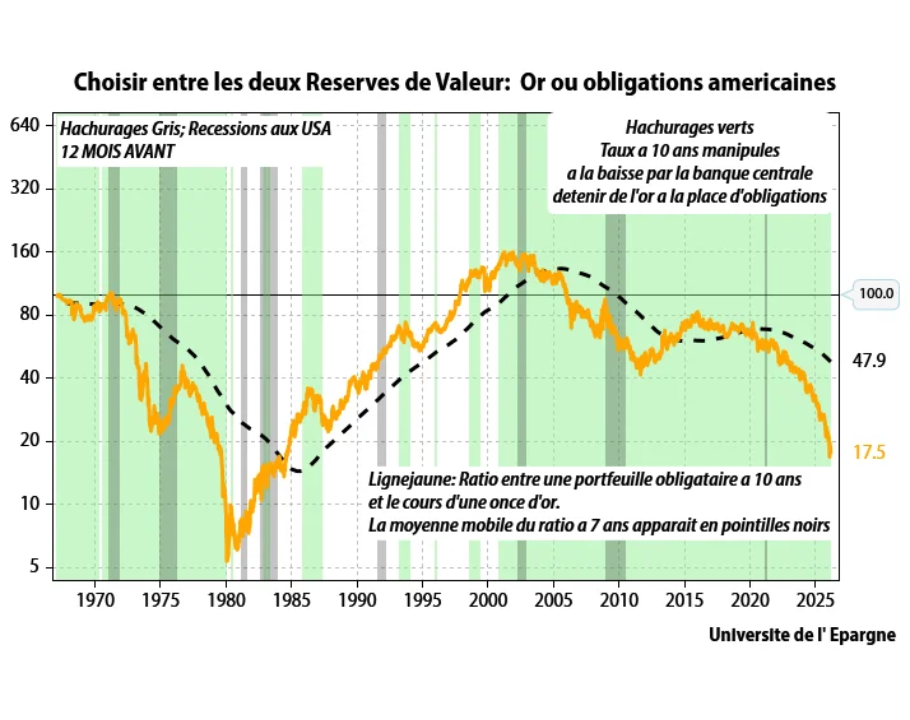 Et si Wicksell a raison, alors, dans le période où la règle d’or de Maurice Allais est respectée les obligations d’état doivent faire mieux que l’or, et dans le cas contraire l’or doit faire mieux que les obligations d’état.