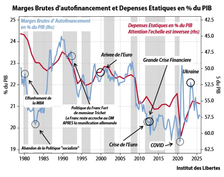 Et ce qui se passe n’a pas changé depuis l’élection de Giscard : une classe politique de technocrates gère le pays pour accroitre ses pouvoirs et c’est son seul but. Et donc, en cas de chocs exogènes, les ajustements en France se font toujours en faveur du secteur étatique et au détriment du secteur privé.
