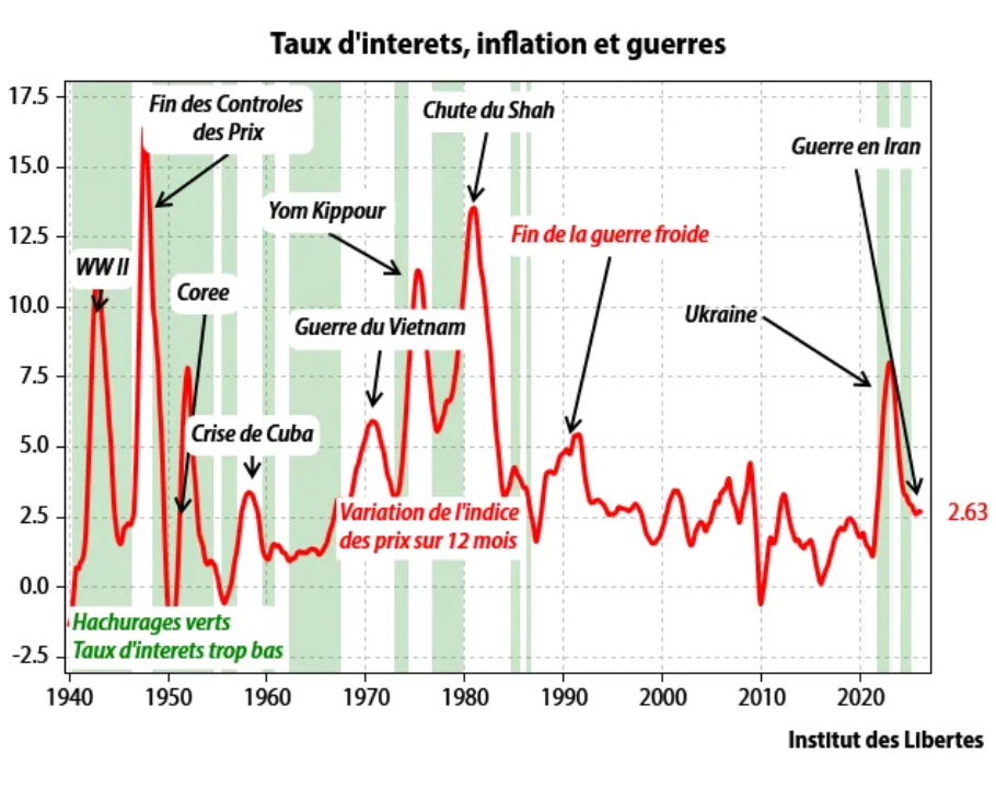 Ces guerres sont financées par des dettes émises avec des taux trop bas et donc sont inflationnistes.