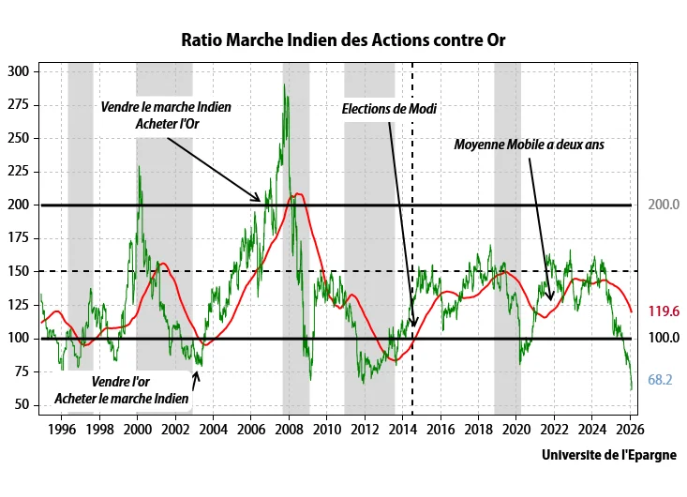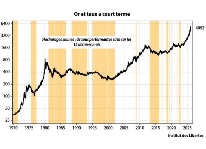 En Janvier 2026, le cours de l’or est monté, en un mois de 12.8 %, ce qui est bien et sur les 12 derniers mois, il a grimpé de 80%, ce qui est encore mieux.